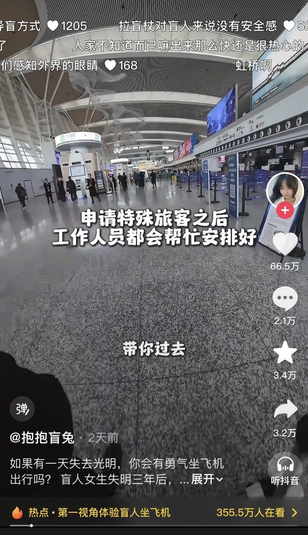 近日,视障博主“抱抱盲兔”发布了一段独自坐飞机的视频,以第一视角记录下了她从无锡飞往广州的乘机出行全过程,引发网友广泛关注。