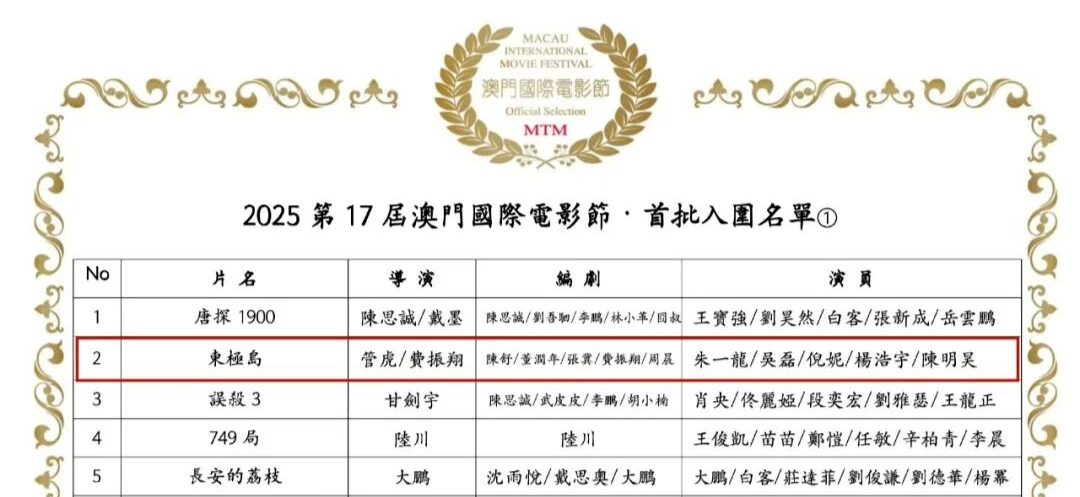 11月5日晚,2025第17届澳门国际电影节公布首批入围名单。