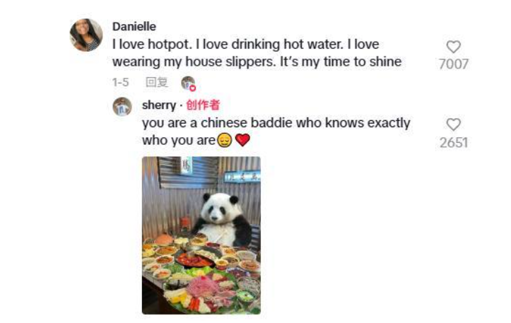 "I love hotpot. I love drinking hot water. I love wearing my house slippers. It's my time to shine," one TikTok user named Danielle said on Sherry's video, and has gained over 7,000 likes.