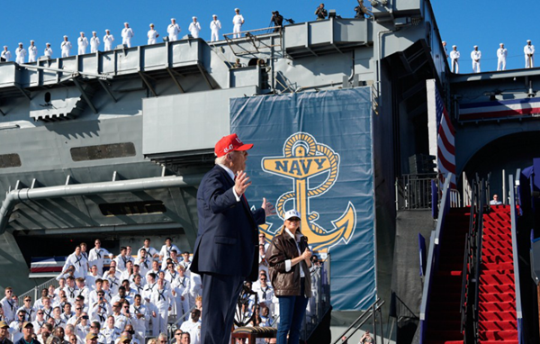 8个月还没修好, “杜鲁门”号航母在特朗普参观时被盖上“遮羞布”