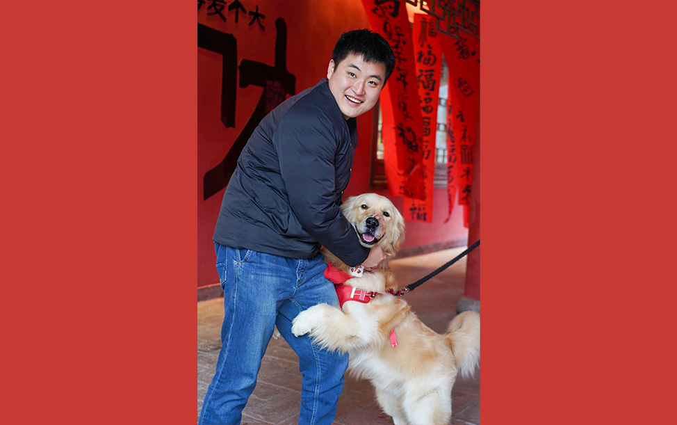 春节短途游热度持续攀升。在四川成都洛带古镇,不少市民携家带口漫步景区。宠物也成为节日里亮眼的“小主角”——小狗换上喜庆的红色胸背带、系上应景的新年围脖,摇头摆尾穿行在人群中,不时引来路人驻足合影。(王博硕/摄)