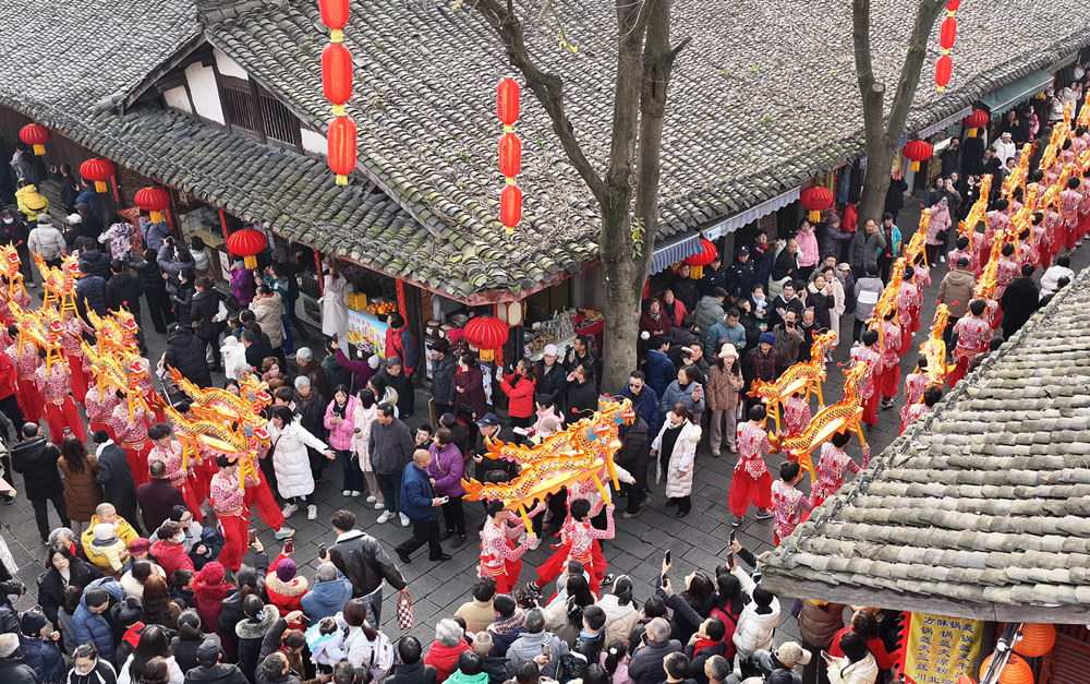 对四川南充阆中而言,春节是一场从腊月初七延续至正月十六、长达39天的文化长卷。今年,当地推出200余场特色民俗展演和非遗体验活动。游客举手机定格的不只是场景,更是一段段正在被重新看见的民间记忆。(王博硕/摄)