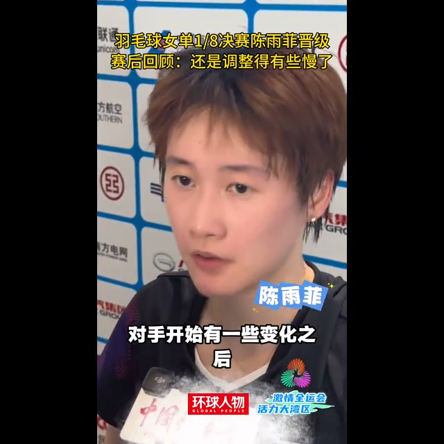 在羽毛球女单1/8决赛中,选手陈雨菲成功晋级,赛后回顾比赛时,陈雨菲表示自己在比赛中调整速度较慢。