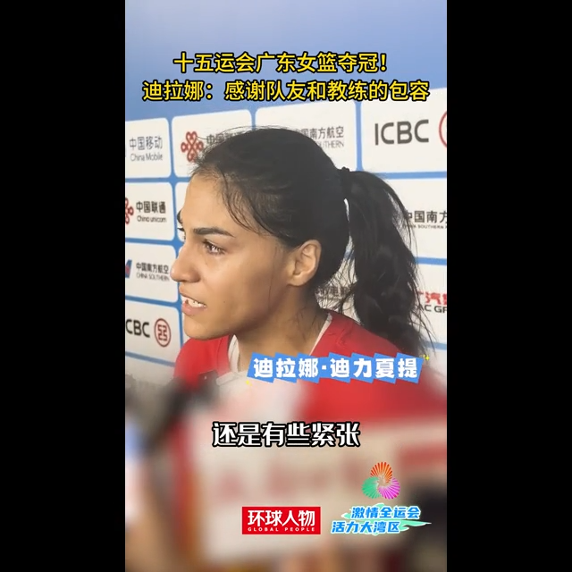 在第十五届全运会广东女篮夺冠后,队员迪拉娜在采访中感谢队友和教练的包容。