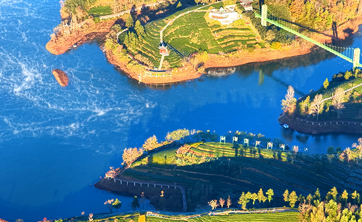 Breathtaking views of tea-themed park shrouded in morning mist in E China's Anhui