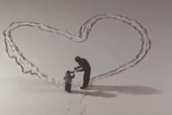 浪漫!父子雪地画巨型爱心送妈妈