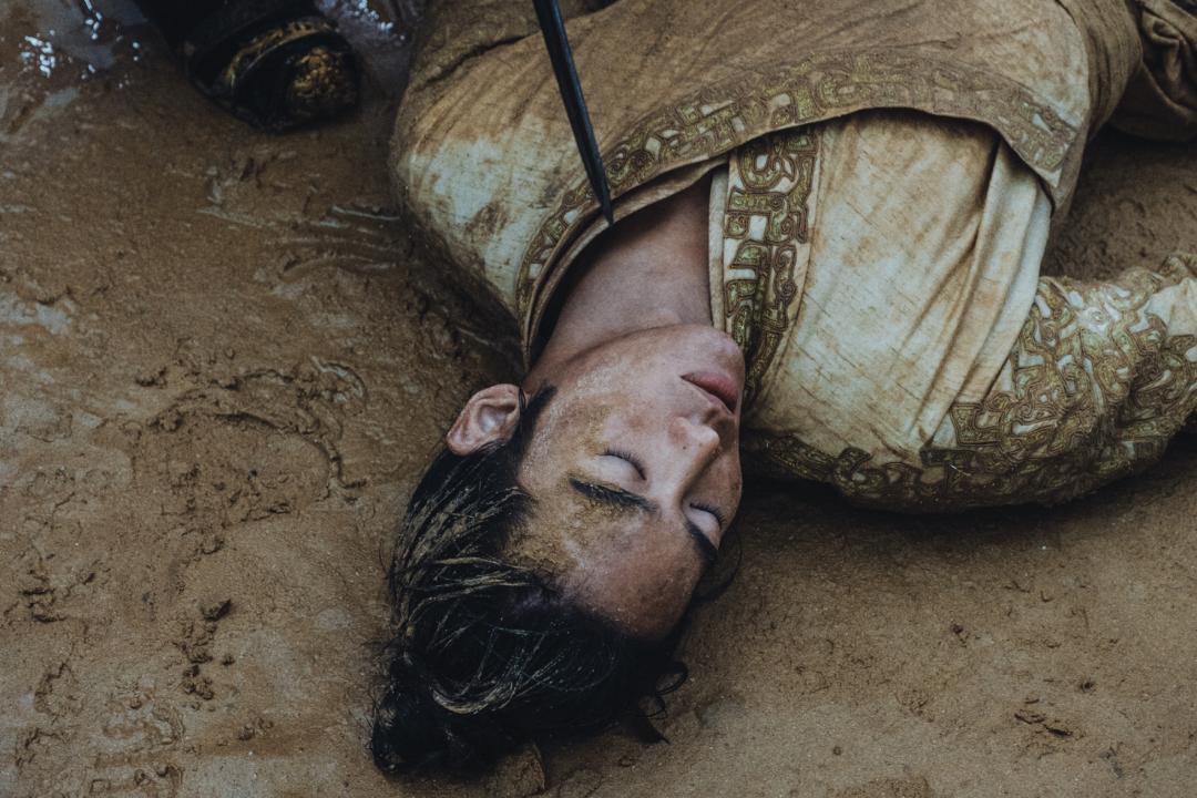 这场戏的取景是日出,每天最适合的天色只有5分钟。为了这5分钟,剧组在新疆拍了5天,于适每天都提前四五小时化妆、准备,在山坡上等待。当草原上透出一丝光,靴子里的对讲机接到导演号令:“三二一,开始!”