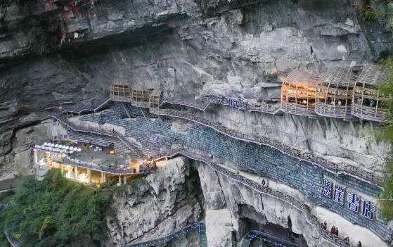 Tourists flock to cliffside bookstore in S China's Guangxi