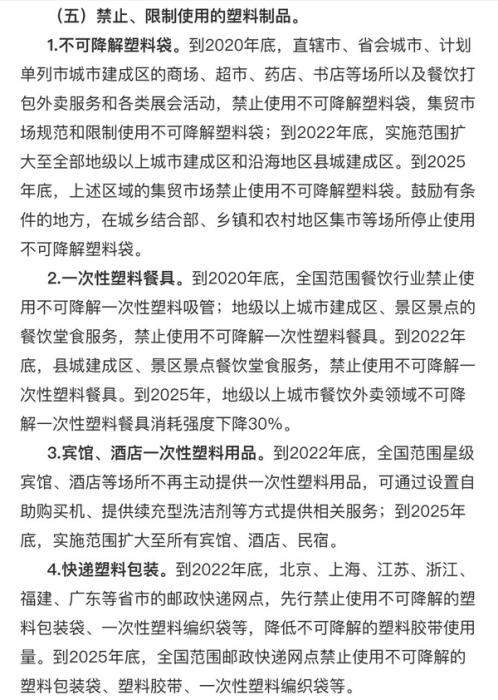 截图自《国家发展改革委、生态环境部关于进一步加强塑料污染治理的意见》