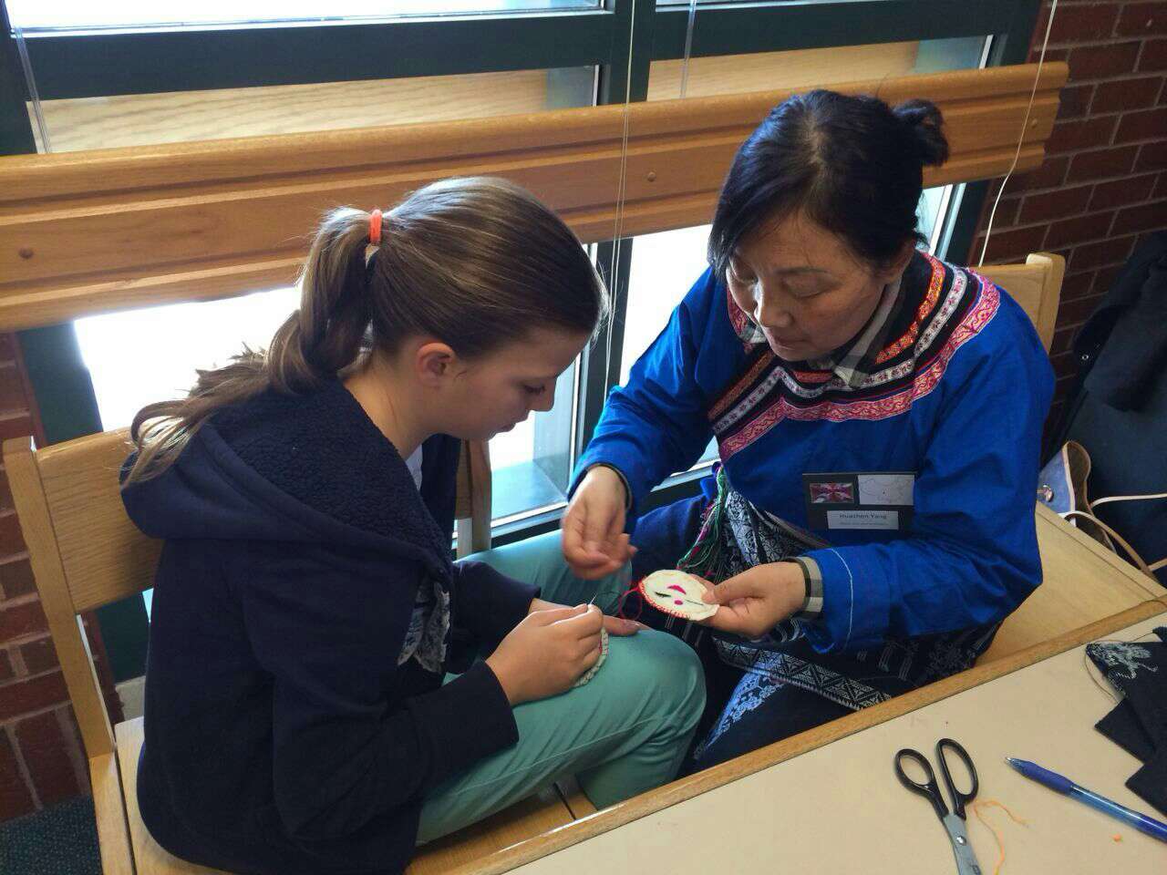 2015年1月,人头攒动的香港国际授权展现场,一个女人高亢亮丽的嗓音吸引了大家的注意。55岁的杨华珍身穿民族服装,正通过儿子的英语翻译,热情的给外国商人介绍衣服上各种纹案代表的文化内涵。她的脸是典型的“高原红”,黑红透亮布满皱纹;手指骨节粗大而弯曲,手掌厚实布满老茧。与身边西装革履、手提公文包的商人相比,她就像从遥远的大山深处“穿越”来的“民间艺人”。