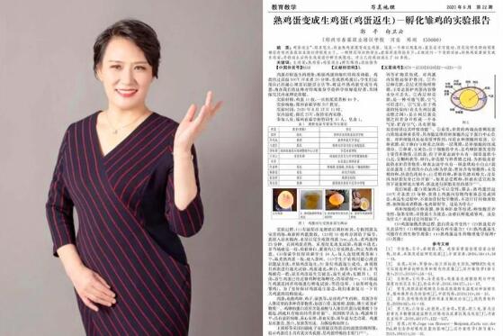 根据公开资料显示,该论文发表于2020年6月份的《写真地理》杂志。作者为郑州市春霖职业培训学校校长郭萍、河南某医院的主任医师白卫云。文章称:鸡蛋返生,顾名思义,由熟鸡蛋变成生鸡蛋。这是一个难以想象的、甚至是不可能的事,但这样奇特的现象,确实在郑州春霖职业培训学校发生了。一群特别培训的学生在郭萍老师指导下,正在进行一个奇特实验,即熟鸡蛋重新变成生鸡蛋,并将返生后的生鸡蛋孵化成雏鸡,并且已经成功返生了40多枚。实验的过程分为五步:取蛋、煮蛋、装蛋、返生、孵化。其中返生步骤为:学生开始利用超心理意识能量方法,开始鸡蛋返生;20分钟后鸡蛋返生成功;由观察员再次进行透光试验,鸡蛋透光,卵白、卵黄分明可见,并当场破壳一枚,证实鸡蛋返生呈液态,返生成功。关于孵化阶段,论文中提到,目前将返生鸡蛋送回养鸡场进行孵化试验等待结果。此后,郑州春霖学校实验室和新郑市郭店“园之原”家庭农场在《写真地理》杂志2021年3月第11期,发表名为《“熟鸡蛋鸡蛋返生孵化雏鸡”实验报告(孵化阶段)》一文,该论文称,熟鸡蛋返生已经实验成功。为了研究返生后的鸡蛋是否具有生命力,郑州春霖学校郭萍老师、郭店鸡场郭太安老师及其他爱好者密切关注孵化进程。最终成功孵化出新的雏鸡,提示熟鸡蛋返生后的鸡蛋同样具有生命力。