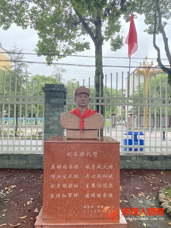 操场旁屹立着胡长保的雕像,稚嫩的童声诉说着对烈士的尊敬和感激。恍惚间,仿若胡长保也正注视着孩子们学习成长。胡长保的精神,如同一粒粒红色的种子撒进孩子们的心间,融进了荥经人民的血液。