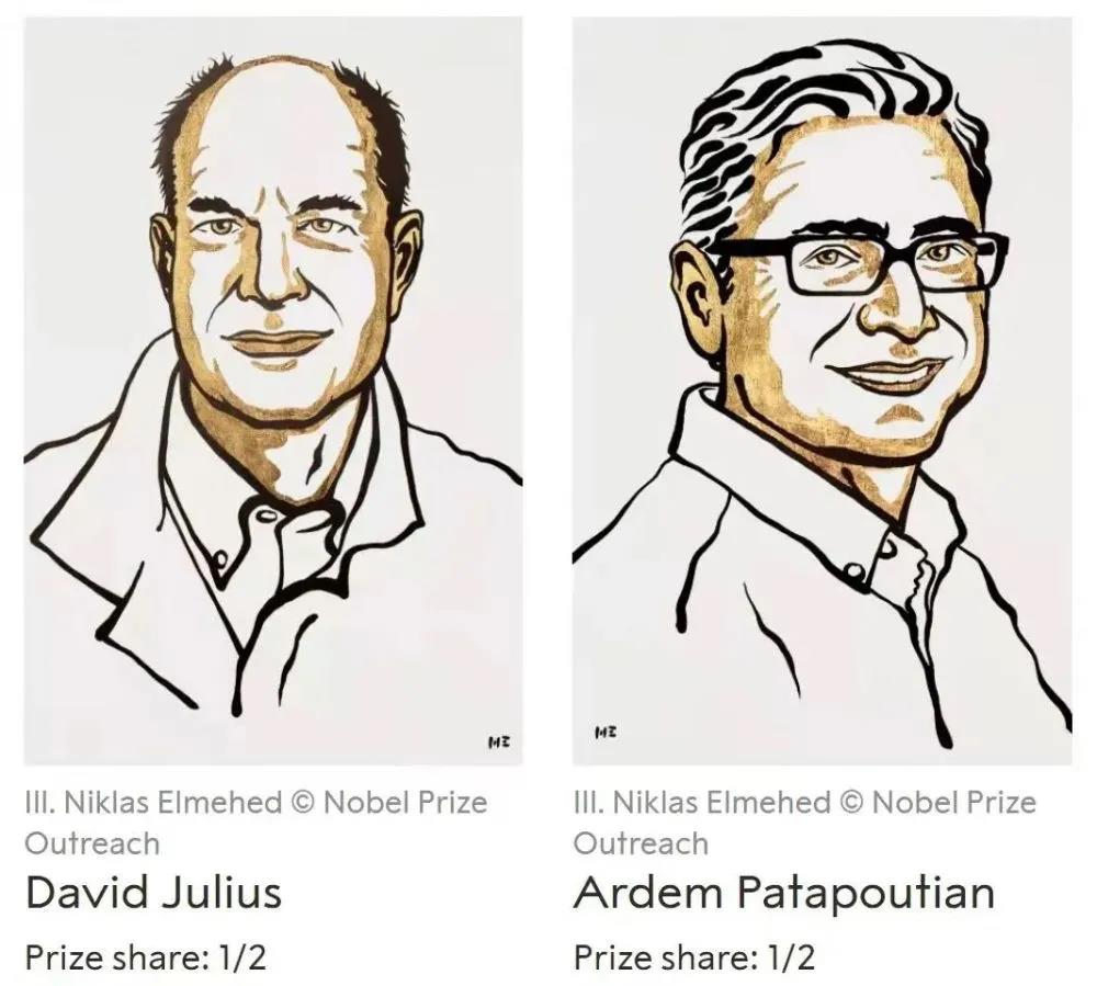 来自美国的科学家戴维·朱利叶斯(David Julius)和阿代姆·帕塔博蒂安(Ardem Patapoutian),因为“发现温度和触觉感受器”获奖。