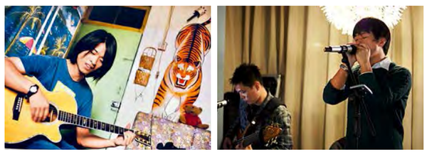右图:2013年11月,钟立风带着自己刚出版的《在各种悲喜交集处》,在山东日照举行了一场弹唱会。
