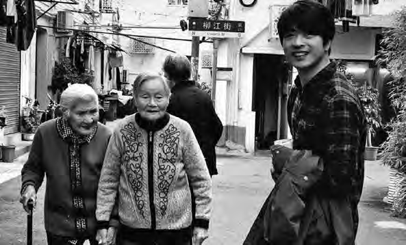 下图:2019年,钟立风行走在上海的街头。