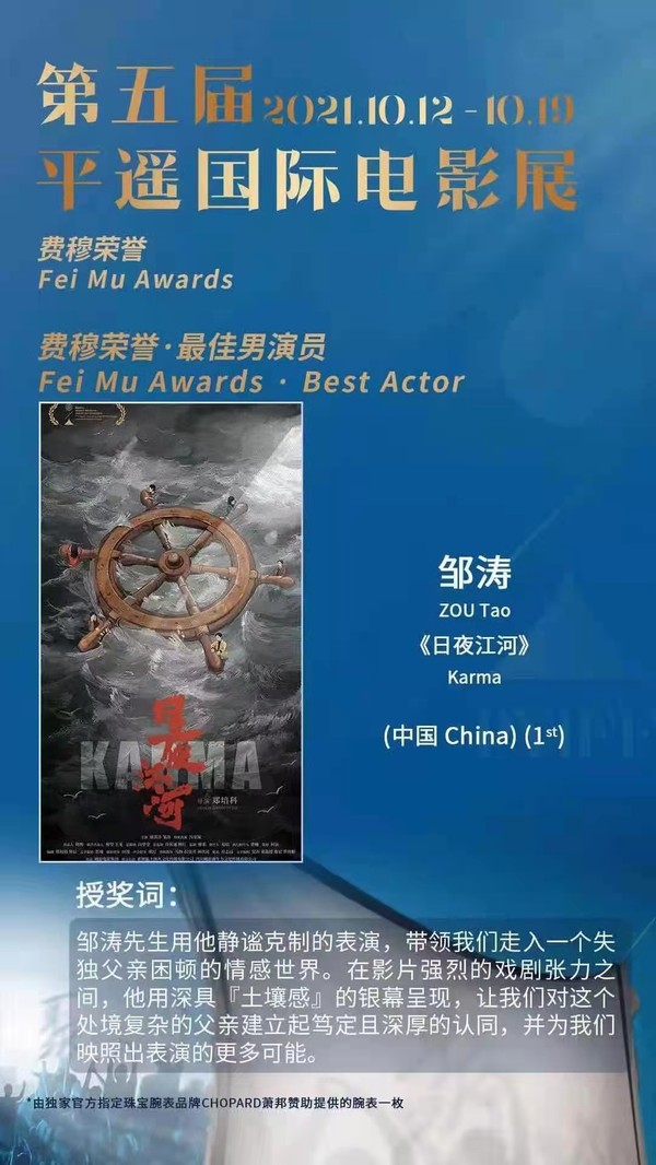 邹涛,第五届平遥国际电影展荣誉之夜,最佳男演员,电影《日夜江河》