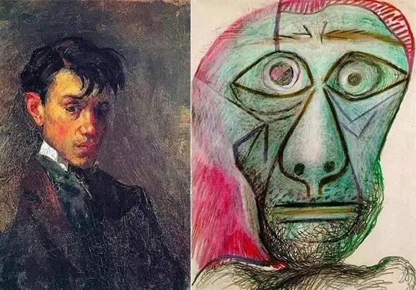 毕加索第一张自画像(15岁)和最后一张自画像(91岁)