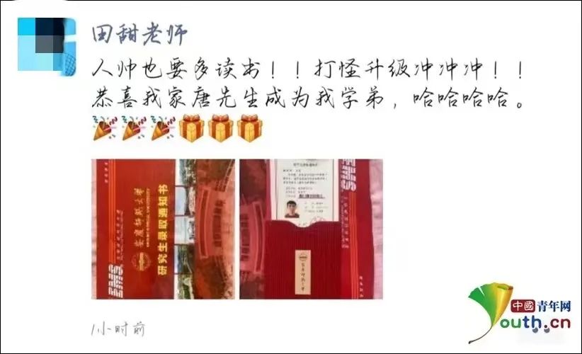 “恭喜我家唐先生成为我学弟”