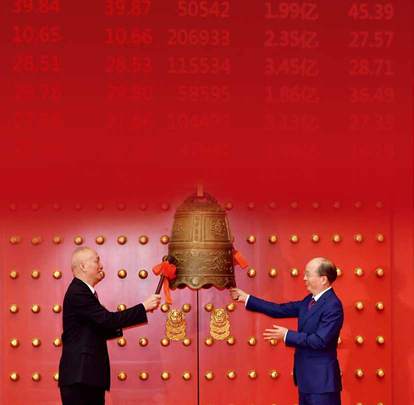 11月15日上午,北京市委书记蔡奇(左)、中国证监会主席易会满共同为北京证券交易所揭牌并敲钟开市。