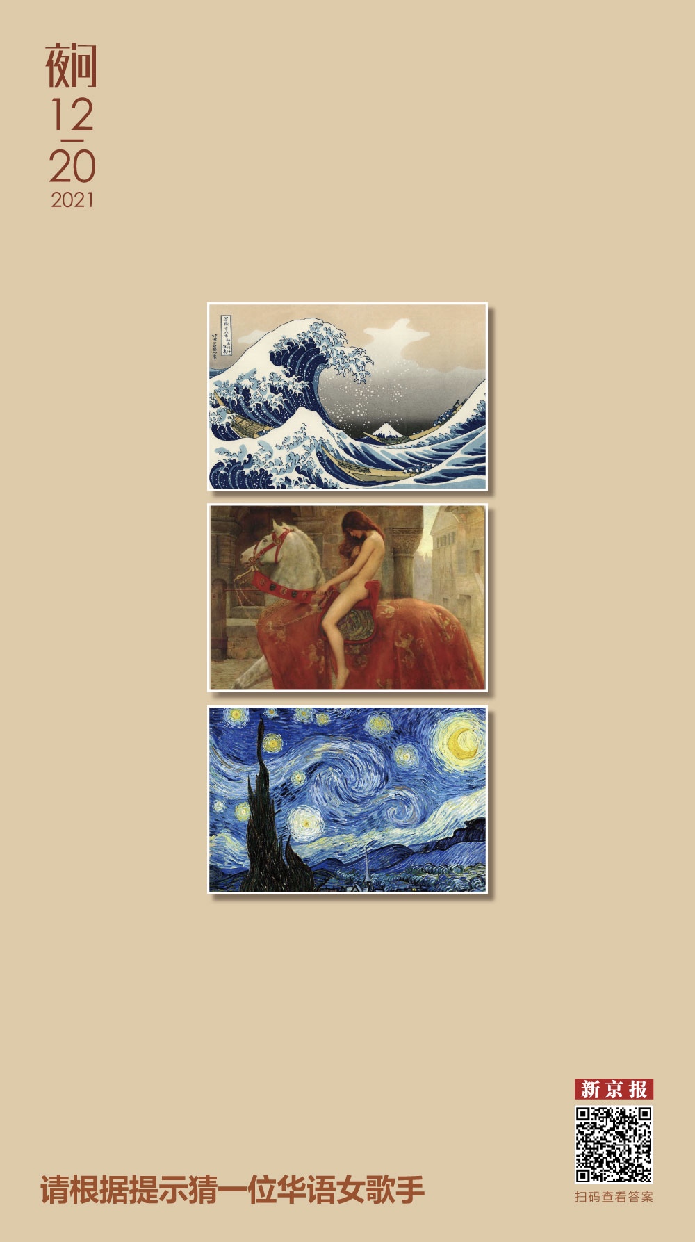 答案:徐佳莹。《神奈川冲浪里》——《寂寞沙洲》、《马背上的戈黛娃夫人》——《身骑白马》、《星月夜》——《一样的月光》。