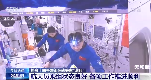 目前,空间站组合体运行稳定,各项空间科学实验也正有条不紊地进行。半年的太空出差之旅,已经过了六分之一,3个人的太空生活井井有条,天地作息同步、一周工作6天,8点上班、6点晚餐,记录窗外、定时锻炼,科学实验,健康体检、一天一测,夜夜安眠。每天还要天地连线,给地面报个平安!