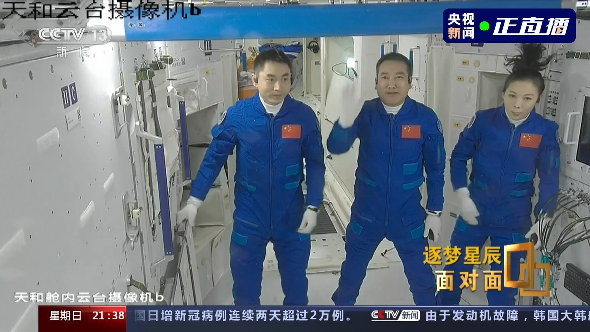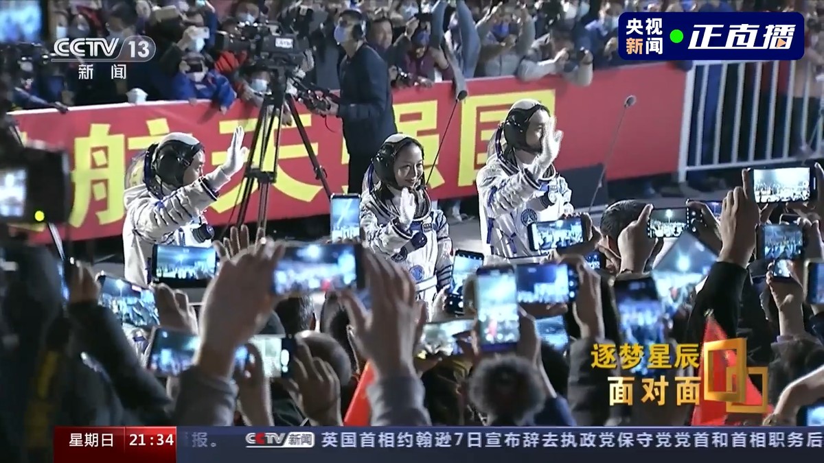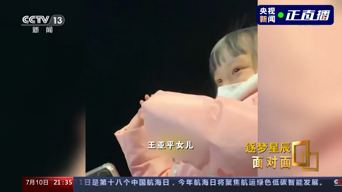 王亚平:对我本身来说最大的一个差别就是上一次我没有孩子,这次有女儿了。当天我确实也找了一下,穿粉红色的小衣服,在喊着妈妈,妈妈。听到之后,我其实只看了孩子一眼,就把目光收回来了。我感觉自己立马眼泪就出来了。那会儿确实不太敢多看,怕有更多牵挂。
