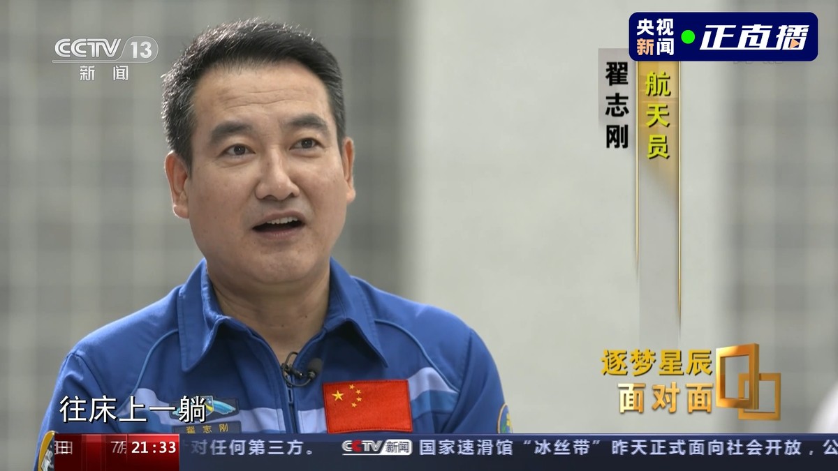 翟志刚:刚回来的时候到了地面往床上一躺,不论那个床有多软都硌得慌。在这个空间站生活最能想起地面生活习惯就是喝水,大小便,早晨起来洗脸,运动之后洗澡,那是在地面上我们认为最常规的东西,是在天上最怀念最想念又实现不了的东西。
