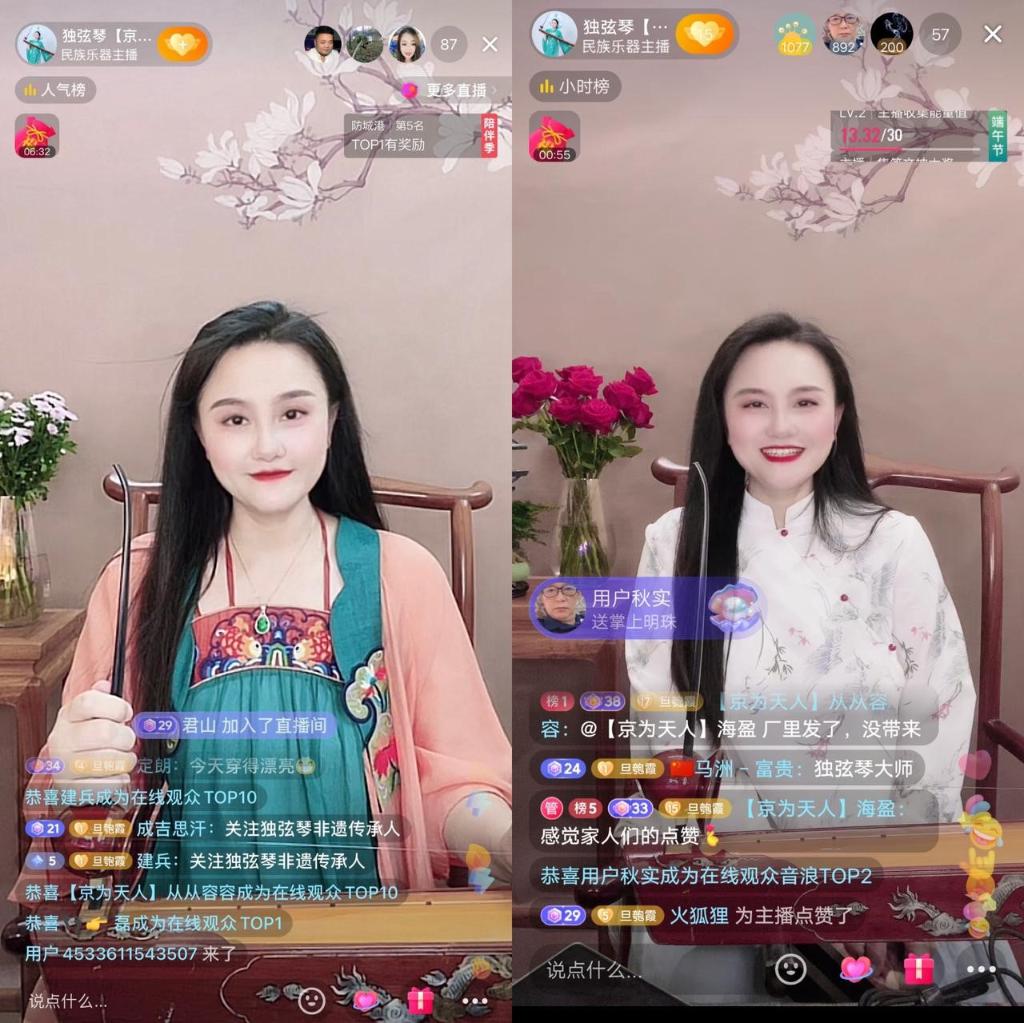 如何让更多的人认识和传播独弦琴艺术?一次刷手机短视频的时候,赵霞想到,是否可以借助短视频直播平台的传播力让更多的人了解独弦琴?2018年赵霞在抖音平台注册了账号@独弦琴【京为天人】。刚开始直播时,只会传统独弦琴曲目的赵霞面对网友点的流行歌曲,由于自己从没有编排过,不知如何弹奏。“要想在网上传播得更好只会传统曲目不行,必须要改变。”赵霞每次下播后,都会练习把一些流行歌曲改编成适合独弦琴演奏的曲调,重新定调、编排指法,再到直播间演奏。