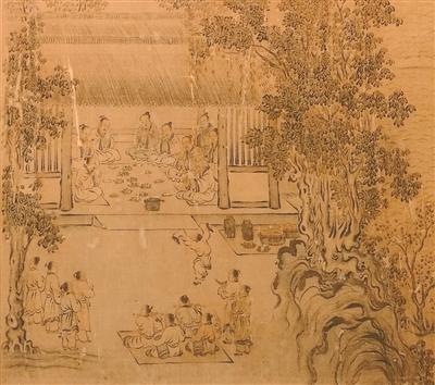根据《诗经》大规模地描绘时令节气下中国人的生活应自宋朝始。南宋宫廷画家马和之活跃于高宗时期,位列御前画院十人之首,高宗、孝宗两朝深赞其画。高宗赵构曾抄录《诗经》三百篇,命马和之每篇配一图,汇成巨帙,可惜未完成人即离世。本展第一件展品便是传为马和之的《豳风图卷》(《七月》部分),表达出对淳朴民风和太平治世的憧憬。另有一卷《豳风七月图》为“扬州八怪”之一罗聘所绘,场景细节丰富,人物线条得马和之遗韵。
