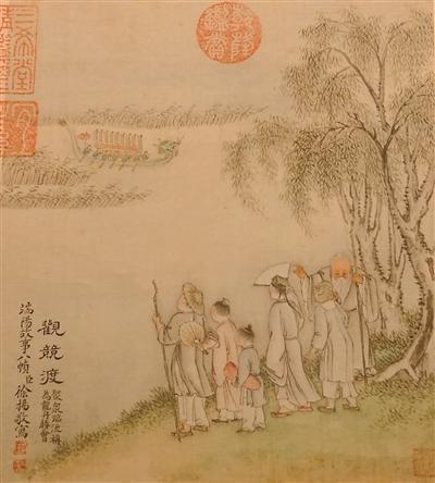 清 徐扬 《端阳故事图》册之《观竞渡》