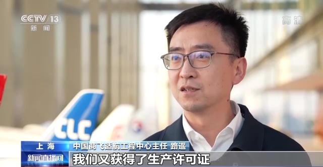 中国商飞适航工程中心主任 路遥:我们是今年的9月29号获得的型号合格证,两个月之后我们又获得了生产许可证,这张证意味着我们的制造厂可以按照我们想要和正批准的设计,来持续稳定、不断地生产适航的安全的飞机。