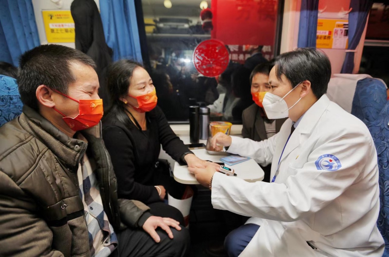 1月6日,春运前一天,宁波开往广州的K212/K209次列车上,出现了一位特殊的“旅客”。他身着白大褂,在7号车厢宣讲新冠“阳康”后的注意事项,南方口音随着列车广播传到每一节车厢。