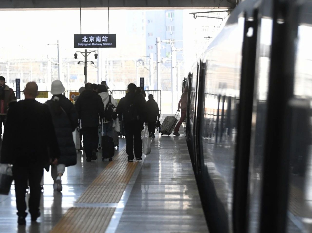 2023年1月8日,北京南站,旅客们准备登车。新京报记者 王贵彬 摄