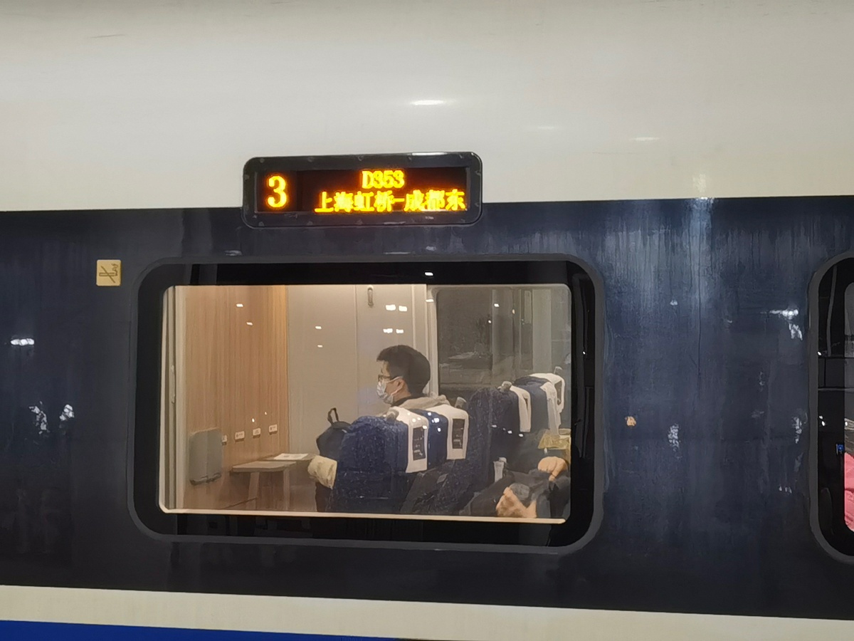 2023年1月10日,上海开往成都的一辆动车。新京报记者 李照 摄