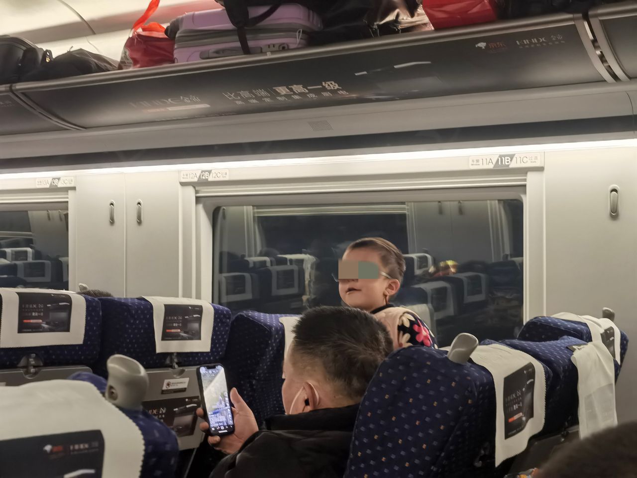 2023年1月10日,上海开往成都的动车上,带孩子的男子正在刷短视频。新京报记者 李照 摄