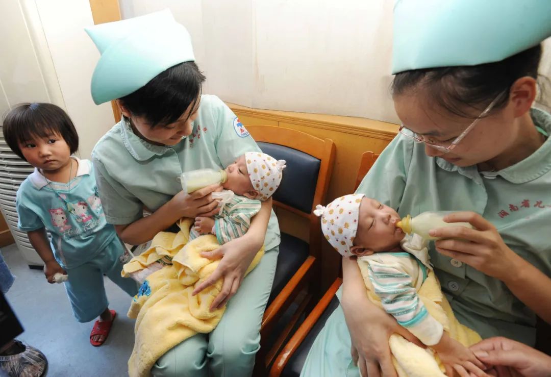 2009年6月18日,湖南省儿童医院的护士在为姐妹俩喂奶。 新华社记者 李尕 摄
