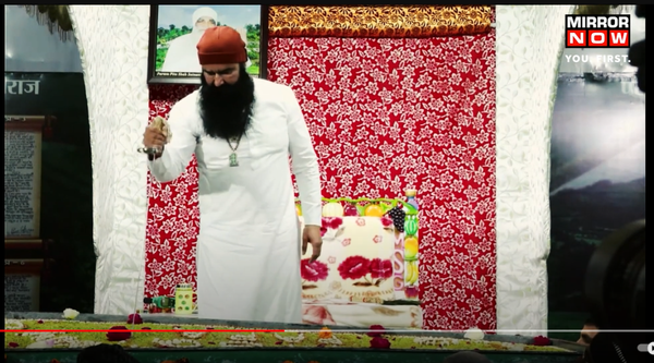 辛格切蛋糕的视频近日在印度国内疯传,人们对此质疑:本该在狱中服刑的犯人,为何会在公开场合切生日蛋糕?