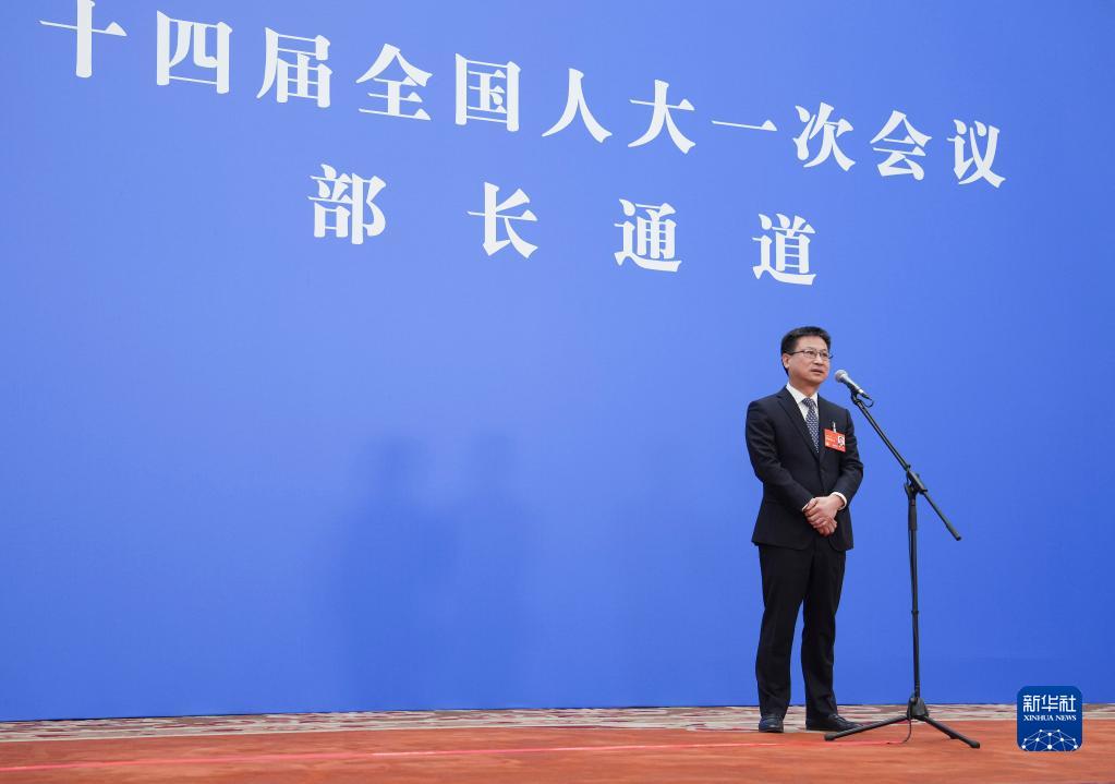 3月12日,第十四届全国人民代表大会第一次会议举行第三场“部长通道”采访活动。这是自然资源部部长王广华接受媒体采访。