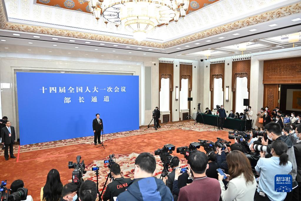 3月12日,第十四届全国人民代表大会第一次会议举行第三场“部长通道”采访活动。这是新华社记者在现场提问。