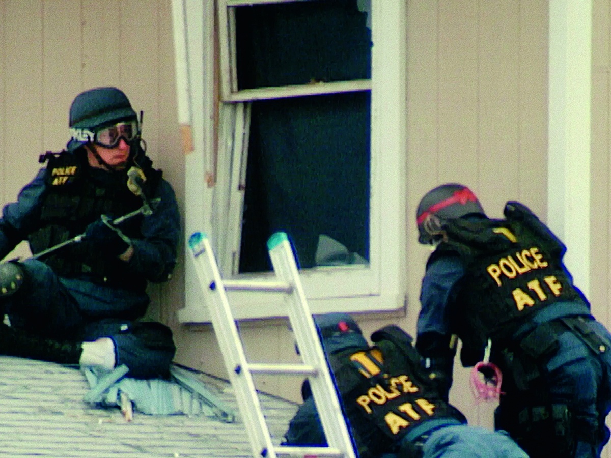 两辆运牛的货车缓缓驶来。车上不是牛,而是150多名身穿防弹背心、手持盾牌的武装特工,来自联邦烟、酒与火器管理局(ATF)。