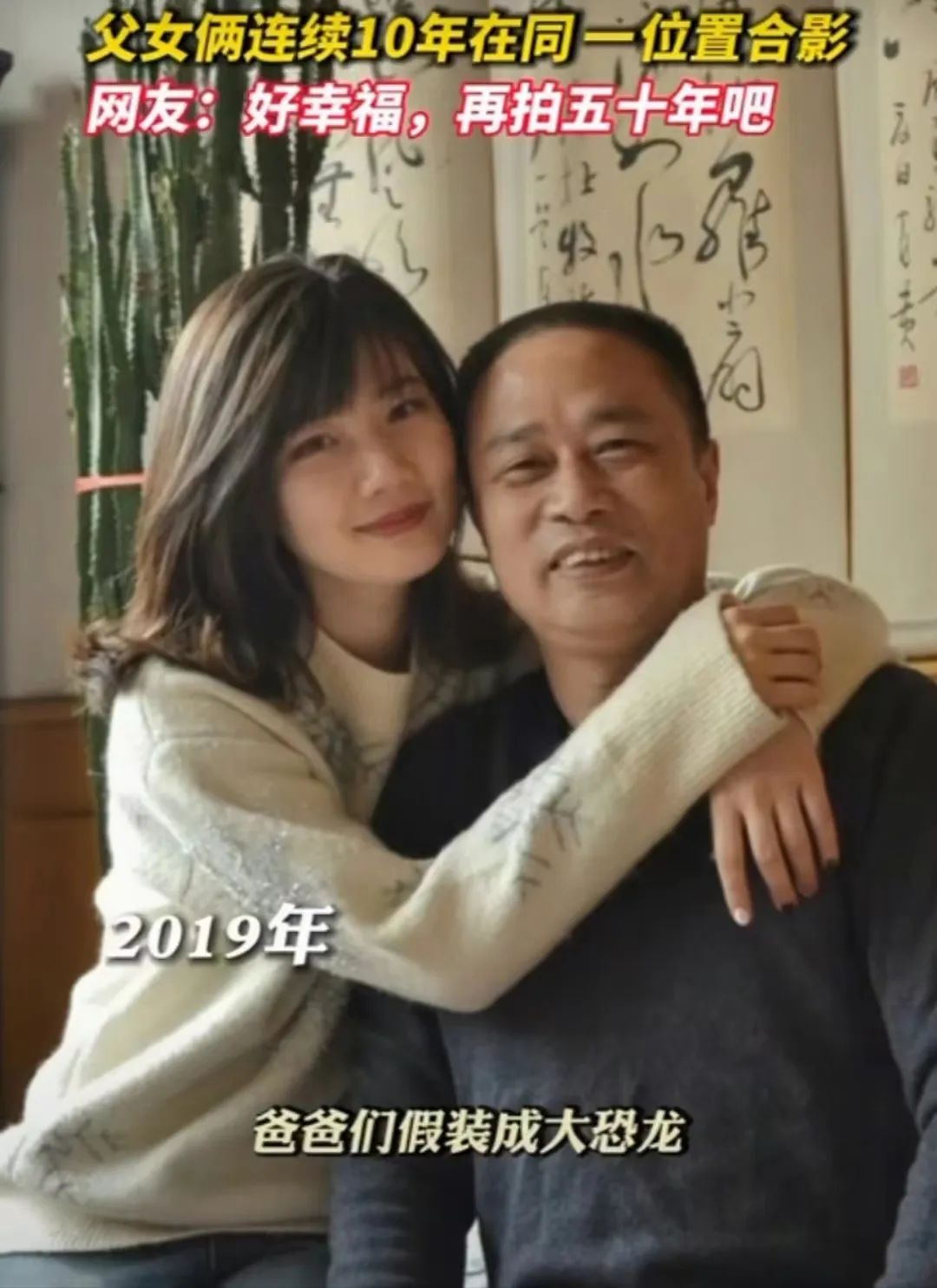晒出她与爸爸10年来的春节合影