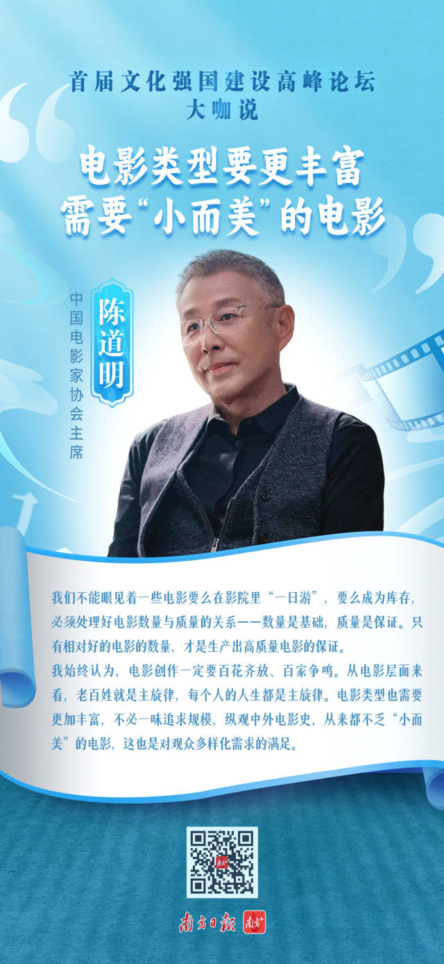 陈道明表示,我们不能眼见着一些电影要么在影院里“一日游”,要么成为库存,必须处理好电影数量与质量的关系——数量是基础,质量是保证。只有相对好的电影的数量,才是生产出高质量电影的保证。