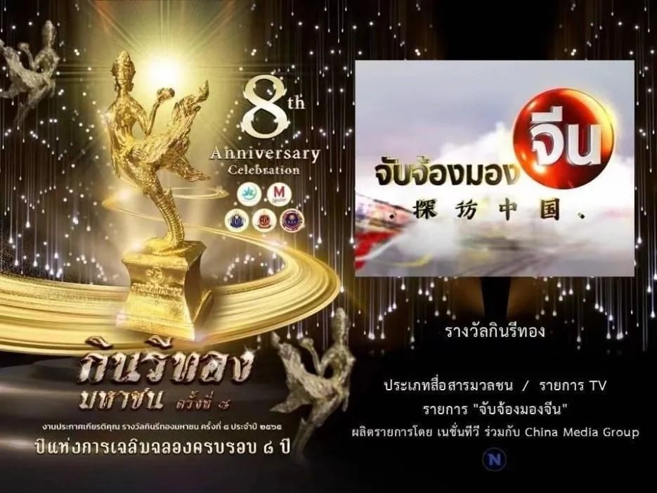 ·《探访中国》栏目获得第八届泰国金吉纳利奖“大众传媒类”最佳电视节目奖。