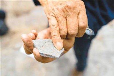 图为在云南省昆明市晋宁区梅树村地区发现的一块化石,黑点为一种名为软舌螺的古生物。新华社记者 陈欣波摄