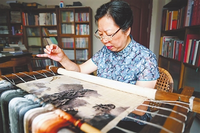 张小红在创作作品。 本报全媒体记者 蔡颖辉 摄