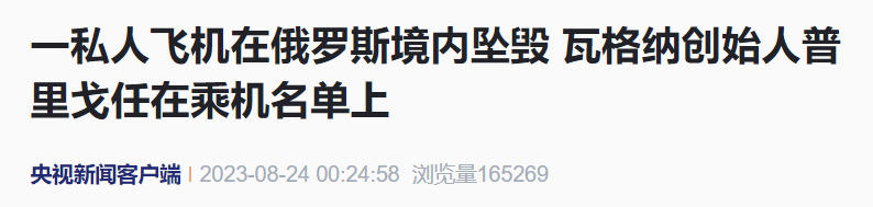 另据央视新闻消息,据俄罗斯联邦航空运输署发布的失事飞机上的人员名单显示,7名乘客中包括瓦格纳集团的几乎所有高层领导。
