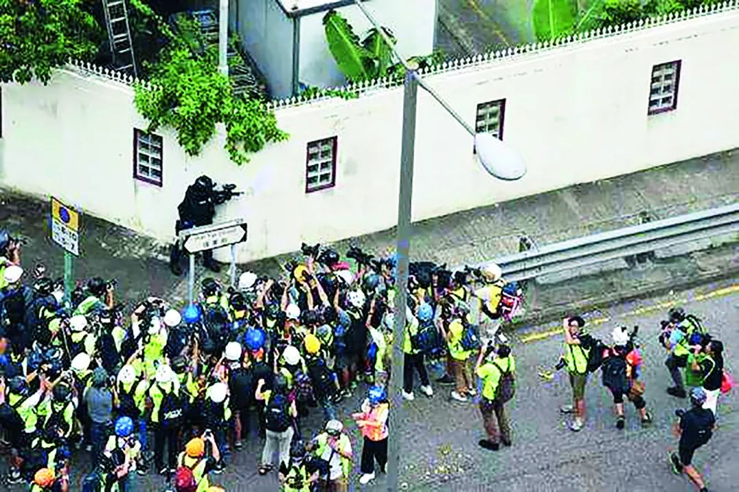 ·2019年8月,一些暴徒在香港伟业街一带用汽油弹、钢珠等袭击警方人员,一些媒体却始终把镜头对准正当防卫的警方人员。