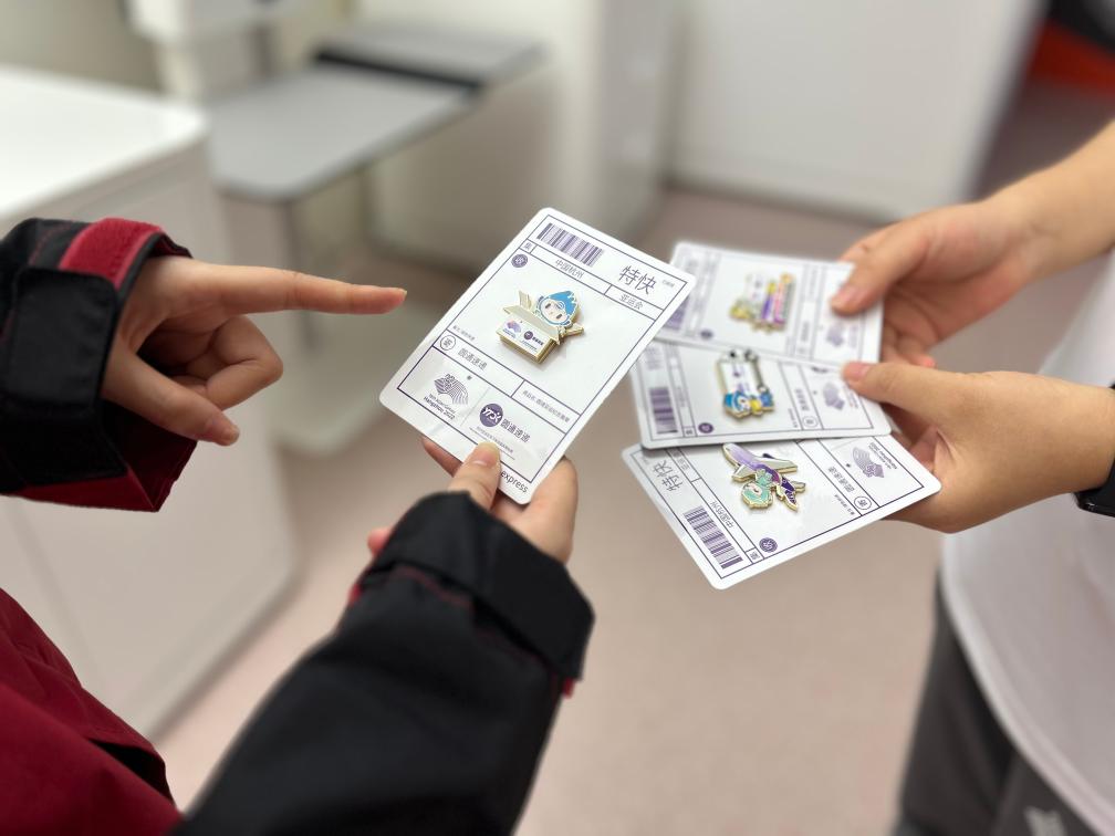 记者在亚运会主媒体中心里,看到不少人在一展台前排队领徽章,款式有坐着航空飞机的莲莲、骑马的琮琮、化身快递小哥的宸宸等。“这些徽章把亚运物流服务与亚运‘三小只’做了特别的结合。”圆通速递工作人员姜玲说,物流服务往往是人们看不见的服务,我们希望通过徽章展示出高效便捷的快递物流以及中国速度。