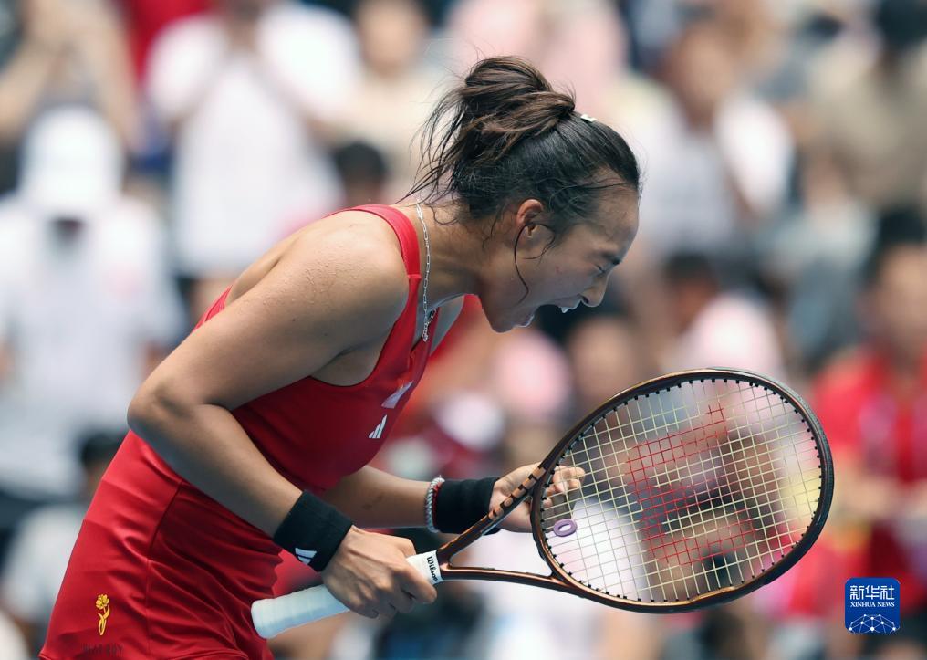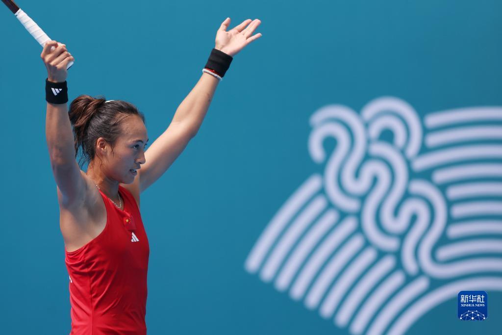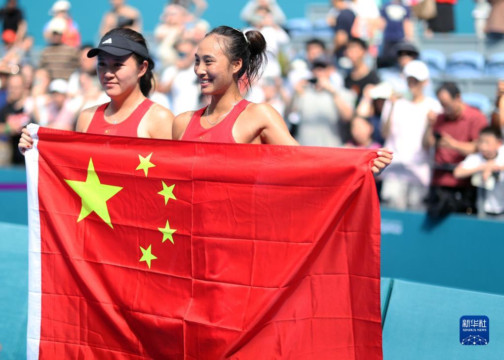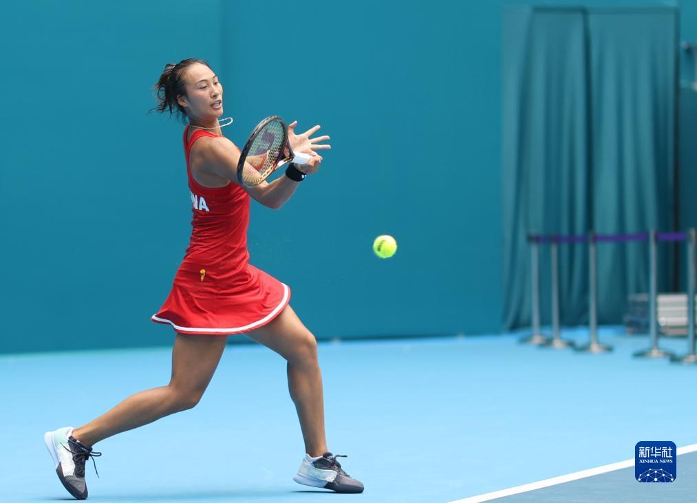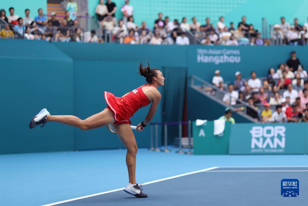 当日,在浙江杭州奥体中心网球中心进行的杭州亚运会网球女子单打决赛中,中国选手郑钦文以2比0战胜队友朱琳,夺得冠军。