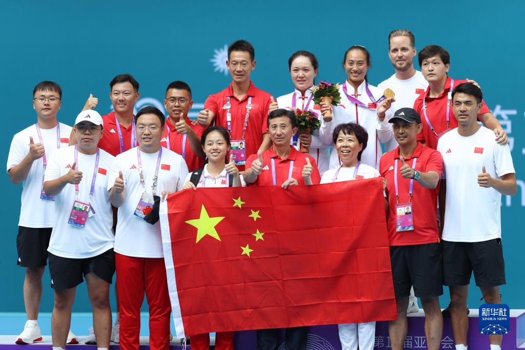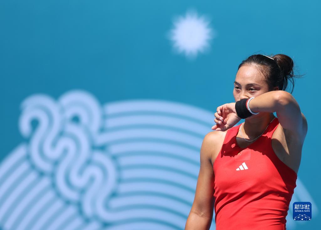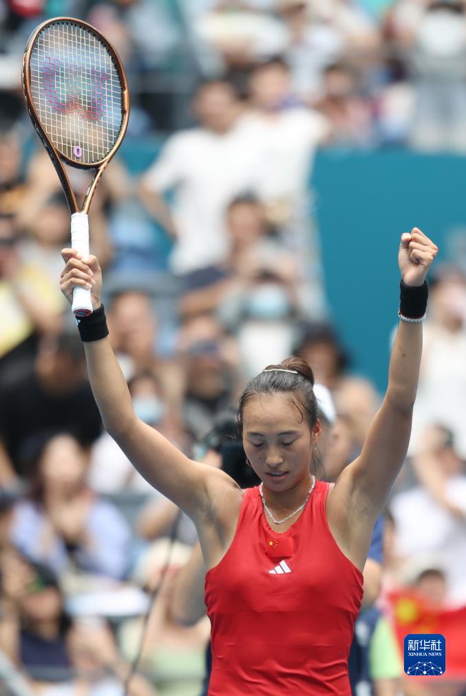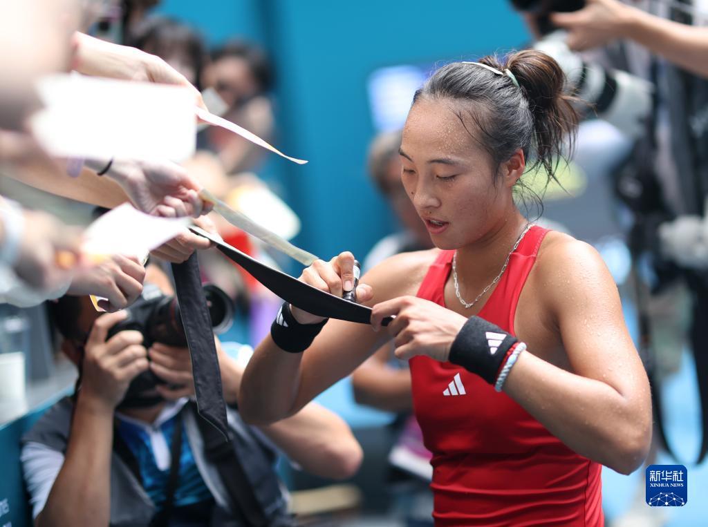 当日,在浙江杭州奥体中心网球中心进行的杭州亚运会网球女子单打决赛中,中国选手郑钦文以2比0战胜队友朱琳,夺得冠军。